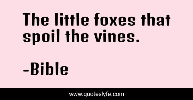 This page presents the quote "The little foxes that spoil the vines.". Author of this quote is Bible. .