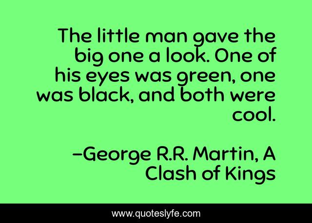 This page presents the quote "The little man gave the big one a look. One of his eyes was green, one was black, and both were cool.". Author of this quote is George R.R. Martin, A Clash of Kings. .