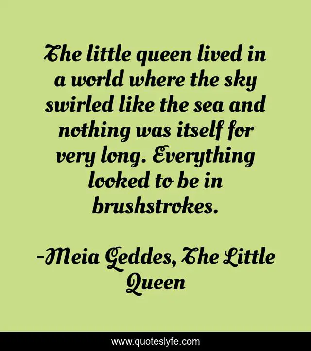 "Meia Geddes, The Little Queen Quotes." Quoteslyfe.com, 2025. Fri. 05 Dec. 2025. <https://www.quoteslyfe.com/quote/The-little-queen-lived-in-a-world-60962>.