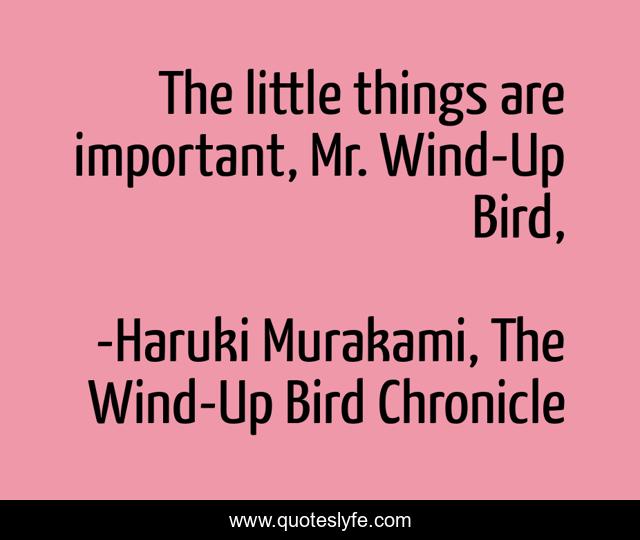 This page presents the quote "The little things are important, Mr. Wind-Up Bird, ". Author of this quote is Haruki Murakami, The Wind-Up Bird Chronicle. .