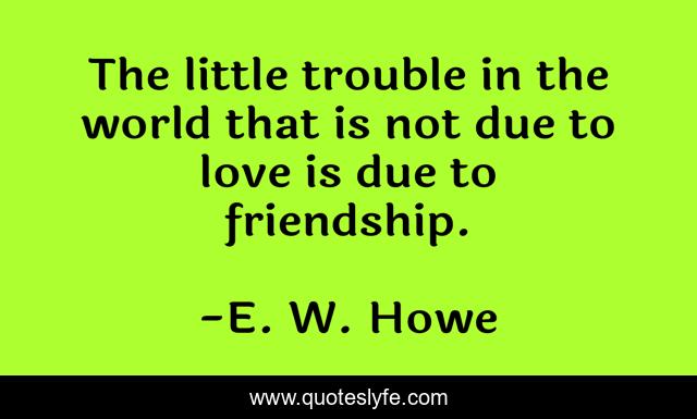 This page presents the quote "The little trouble in the world that is not due to love is due to friendship.". Author of this quote is E. W. Howe. This quote is about world, love, affection, love is,.