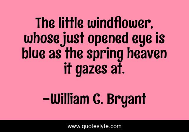 This page presents the quote "The little windflower, whose just opened eye is blue as the spring heaven it gazes at.". Author of this quote is William C. Bryant. This quote is about blue, spring, eye,.