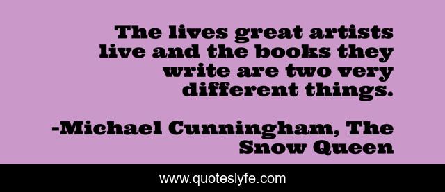 This page presents the quote "The lives great artists live and the books they write are two very different things.". Author of this quote is Michael Cunningham, The Snow Queen. This quote is about books, writers,.