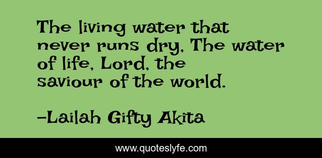 This page presents the quote "The living water that never runs dry, The water of life, Lord, the saviour of the world.". Author of this quote is Lailah Gifty Akita. This quote is about saviour, living-water, river-of-life, lord, theology,.