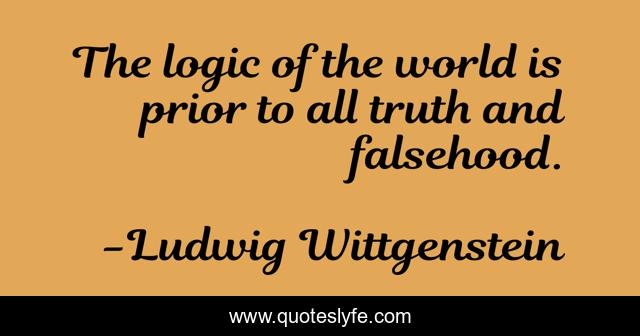 This page presents the quote "The logic of the world is prior to all truth and falsehood.". Author of this quote is Ludwig Wittgenstein. This quote is about world, logic, prior,.