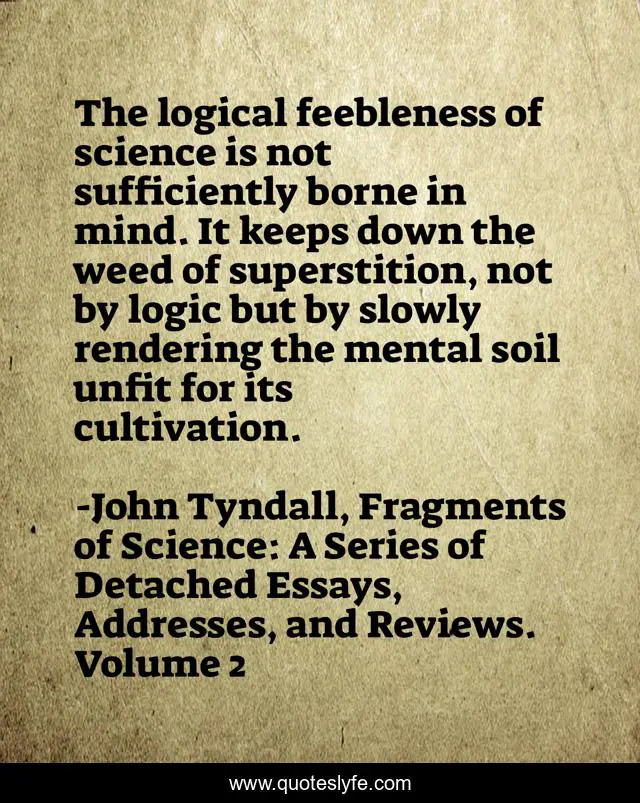 "John Tyndall, Fragments of Science: A Series of Detached Essays, Addresses, and Reviews. Volume 2 Quotes." Quoteslyfe.com, 2025. Fri. 05 Dec. 2025. <https://www.quoteslyfe.com/quote/The-logical-feebleness-of-science-is-not-87895>.
