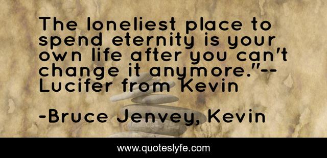 This page presents the quote "The loneliest place to spend eternity is your own life after you can't change it anymore."--Lucifer from Kevin". Author of this quote is Bruce Jenvey, Kevin. This quote is about horror, paranormal-fiction,.