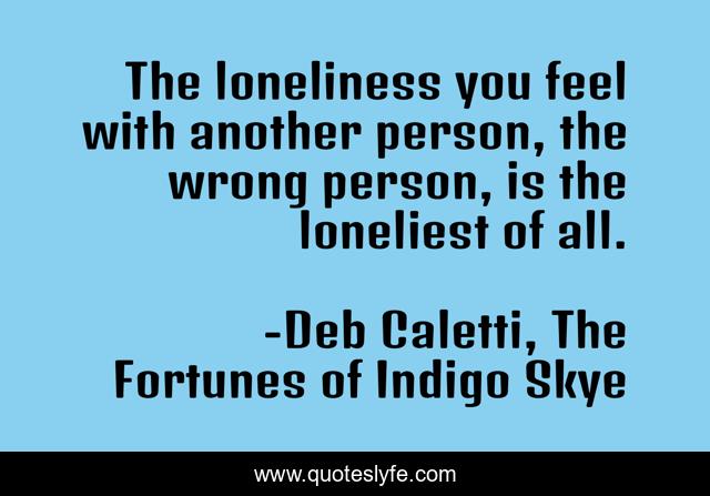 "Deb Caletti, The Fortunes of Indigo Skye Quotes." Quoteslyfe.com, 2025. Fri. 05 Dec. 2025. <https://www.quoteslyfe.com/quote/The-loneliness-you-feel-with-another-person-51111>.
