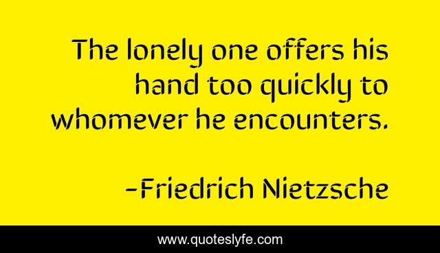 This page presents the quote "The lonely one offers his hand too quickly to whomever he encounters.". Author of this quote is Friedrich Nietzsche. .