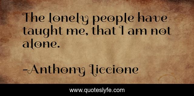 This page presents the quote "The lonely people have taught me, that I am not alone.". Author of this quote is Anthony Liccione. This quote is about alone, single, crowd-of-loneliness,.