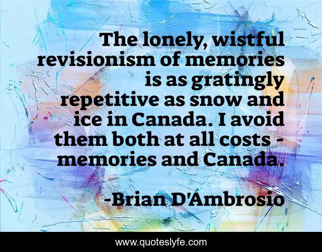 "Brian D'Ambrosio Quotes." Quoteslyfe.com, 2025. Fri. 05 Dec. 2025. <https://www.quoteslyfe.com/quote/The-lonely-wistful-revisionism-of-memories-is-164512>.
