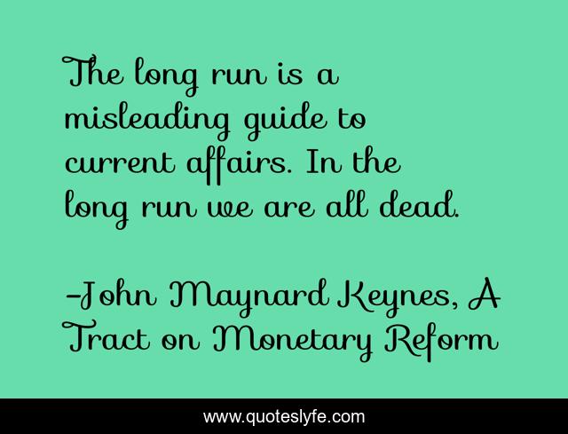 This page presents the quote "The long run is a misleading guide to current affairs. In the long run we are all dead.". Author of this quote is John Maynard Keynes, A Tract on Monetary Reform. .