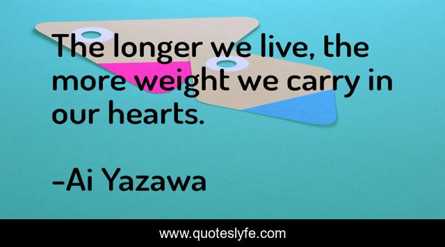"Ai Yazawa Quotes." Quoteslyfe.com, 2025. Mon. 08 Dec. 2025. <https://www.quoteslyfe.com/quote/The-longer-we-live-the-more-weight-3049>.