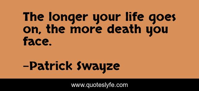 This page presents the quote "The longer your life goes on, the more death you face.". Author of this quote is Patrick Swayze. This quote is about life, face,.