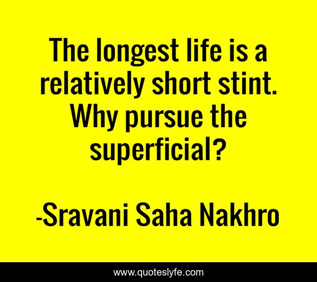 This page presents the quote "The longest life is a relatively short stint. Why pursue the superficial?". Author of this quote is Sravani Saha Nakhro. .