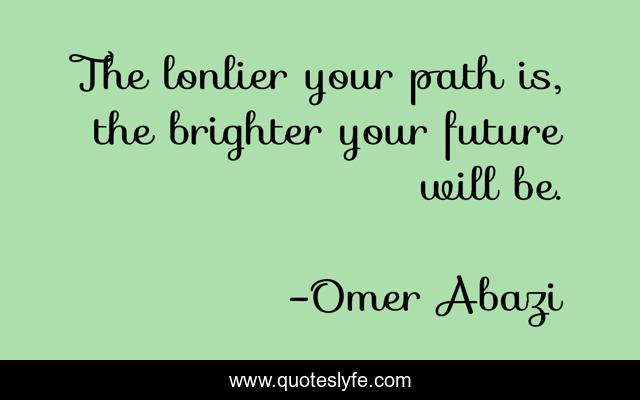This page presents the quote "The lonlier your path is, the brighter your future will be.". Author of this quote is Omer Abazi. This quote is about omer-abazi, sadness,.