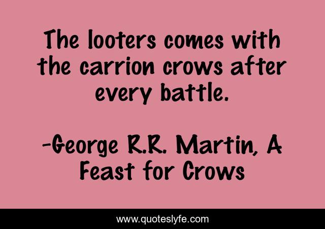 "George R.R. Martin, A Feast for Crows Quotes." Quoteslyfe.com, 2025. Sat. 06 Dec. 2025. <https://www.quoteslyfe.com/quote/The-looters-comes-with-the-carrion-crows-248575>.