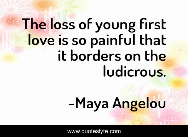 This page presents the quote "The loss of young first love is so painful that it borders on the ludicrous.". Author of this quote is Maya Angelou. This quote is about loss, love, affection, love is,.