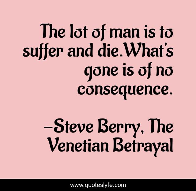 This page presents the quote "The lot of man is to suffer and die.What's gone is of no consequence.". Author of this quote is Steve Berry, The Venetian Betrayal. This quote is about life, men, suffering,.