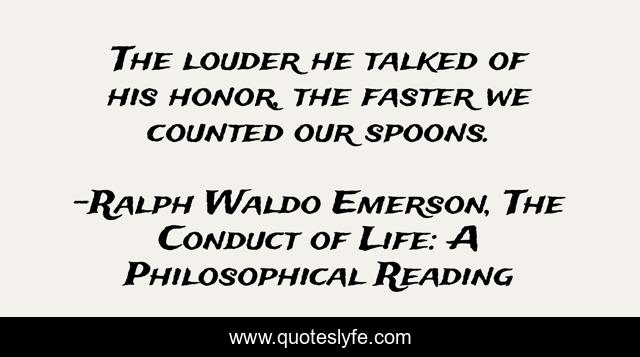 This page presents the quote "The louder he talked of his honor, the faster we counted our spoons.". Author of this quote is Ralph Waldo Emerson, The Conduct of Life: A Philosophical Reading. .