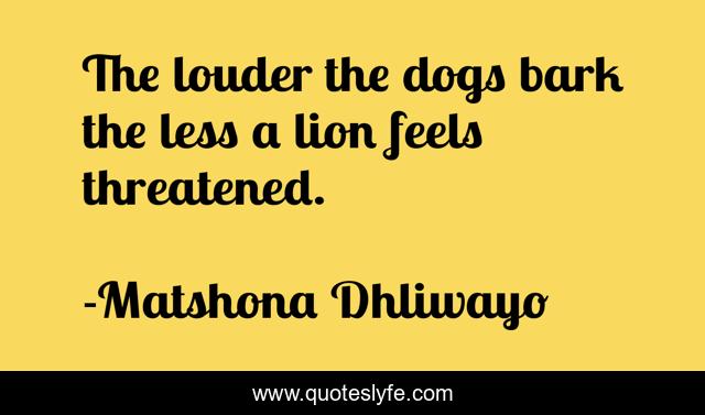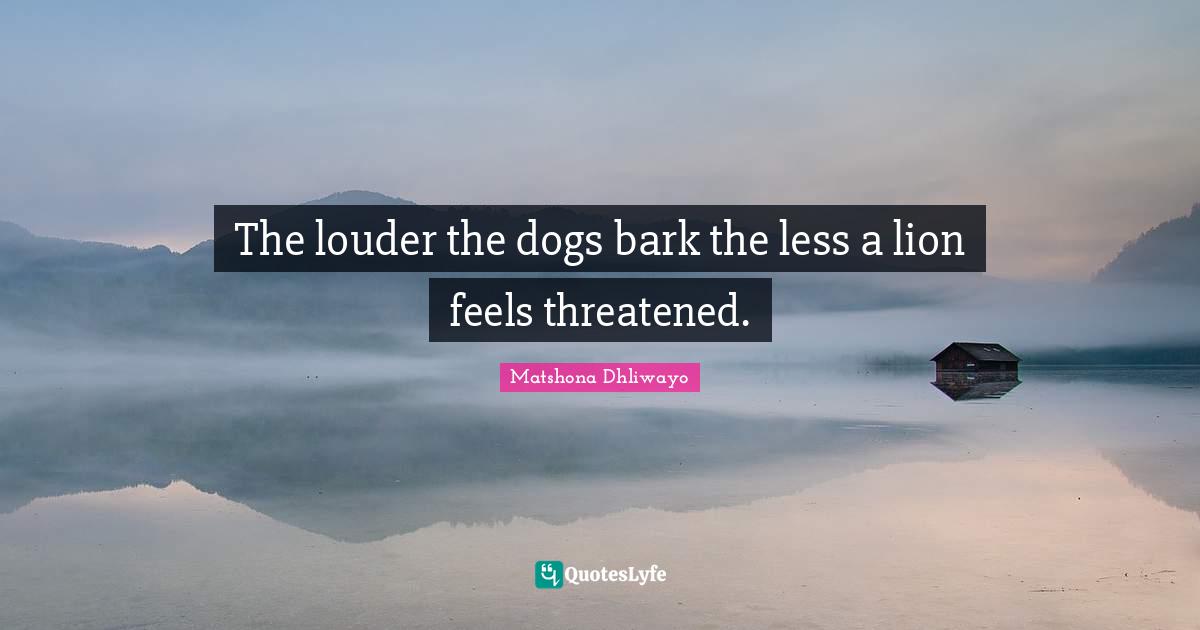"Matshona Dhliwayo Quotes." Quoteslyfe.com, 2026. Sat. 21 Mar. 2026. <https://www.quoteslyfe.com/quote/The-louder-the-dogs-bark-the-less-58281>.