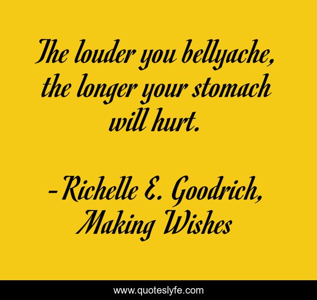 This page presents the quote "The louder you bellyache, the longer your stomach will hurt.". Author of this quote is Richelle E. Goodrich, Making Wishes. This quote is about grumble, bellyache, wail, whine, whimper, gripe, hurt, richelle, richelle-goodrich,.