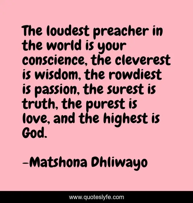 The loudest preacher in the world is your conscience, the cleverest is wisdom, the rowdiest is passion, the surest is truth, the purest is love, and the highest is God.