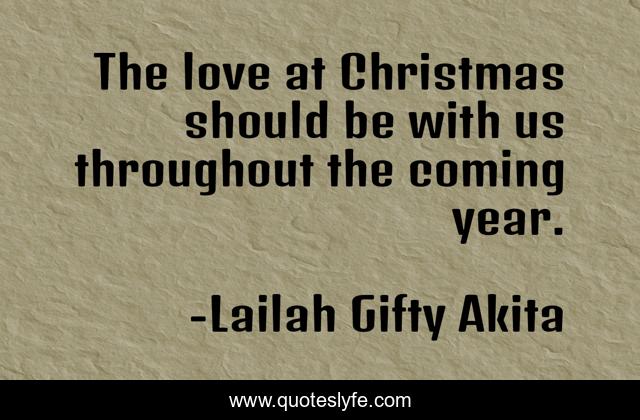 This page presents the quote "The love at Christmas should be with us throughout the coming year.". Author of this quote is Lailah Gifty Akita. This quote is about new-year, faith, spiritual, love, new-year-wish, christian-living, christmas, affection,.