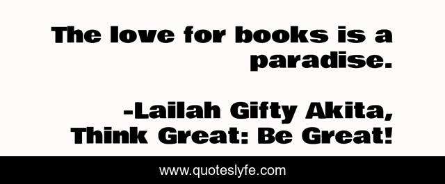 "Lailah Gifty Akita, Think Great: Be Great! Quotes." Quoteslyfe.com, 2025. Mon. 08 Dec. 2025. <https://www.quoteslyfe.com/quote/The-love-for-books-is-a-paradise-238482>.