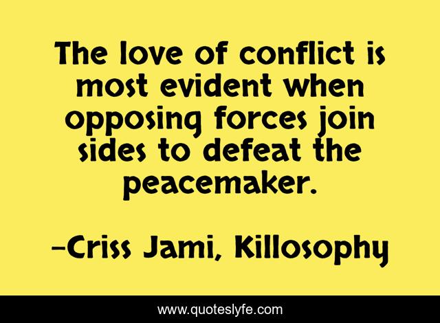 "Criss Jami, Killosophy Quotes." Quoteslyfe.com, 2025. Tue. 09 Dec. 2025. <https://www.quoteslyfe.com/quote/The-love-of-conflict-is-most-evident-52167>.