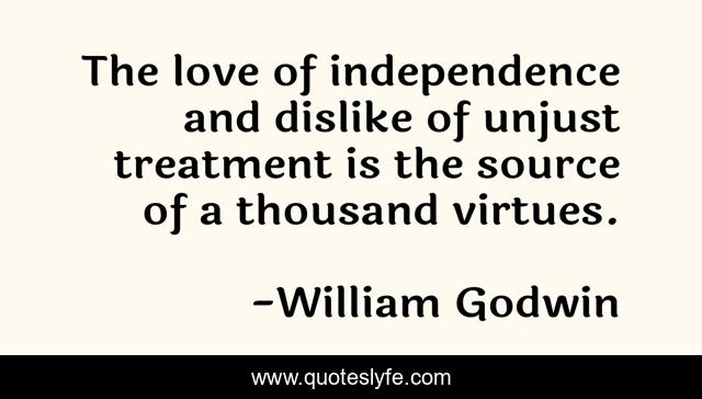 This page presents the quote "The love of independence and dislike of unjust treatment is the source of a thousand virtues.". Author of this quote is William Godwin. This quote is about unjust, dislike, love, affection,.