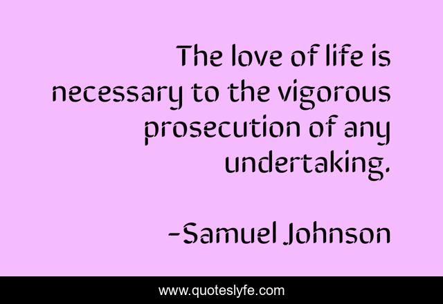 This page presents the quote "The love of life is necessary to the vigorous prosecution of any undertaking.". Author of this quote is Samuel Johnson. .
