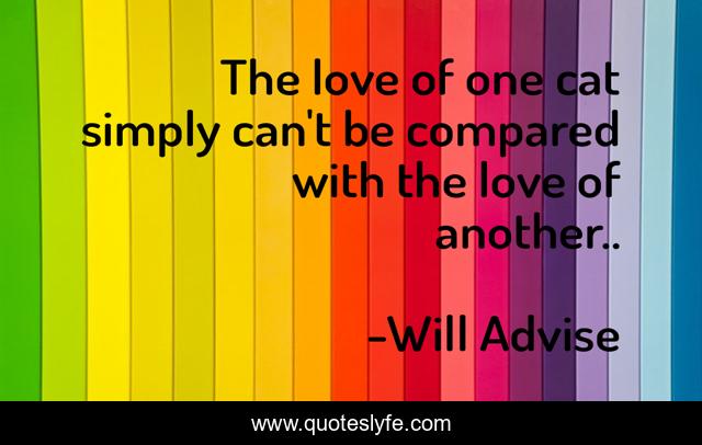 This page presents the quote "The love of one cat simply can't be compared with the love of another..". Author of this quote is Will Advise. This quote is about cats, love, affection,.