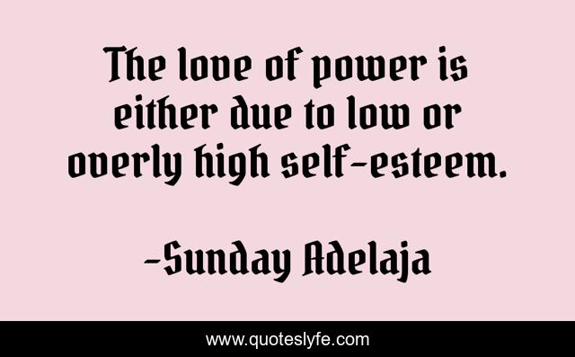 This page presents the quote "The love of power is either due to low or overly high self-esteem.". Author of this quote is Sunday Adelaja. This quote is about power, self-esteem,.