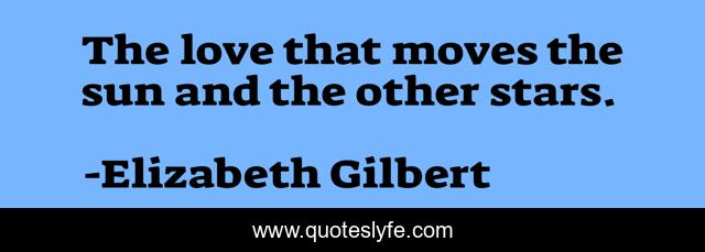This page presents the quote "The love that moves the sun and the other stars.". Author of this quote is Elizabeth Gilbert. This quote is about enthusiasm, love, inspirational, affection,.