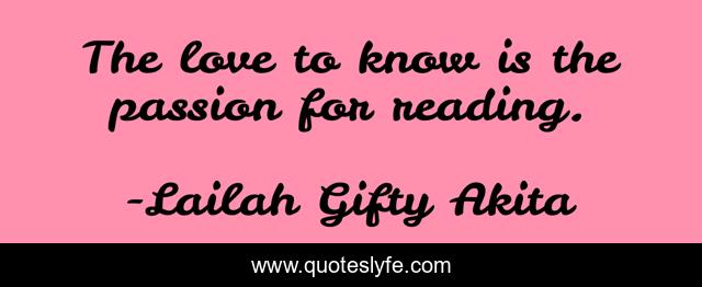 This page presents the quote "The love to know is the passion for reading.". Author of this quote is Lailah Gifty Akita. This quote is about books, education, reading,.
