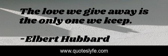 This page presents the quote "The love we give away is the only one we keep.". Author of this quote is Elbert Hubbard. .