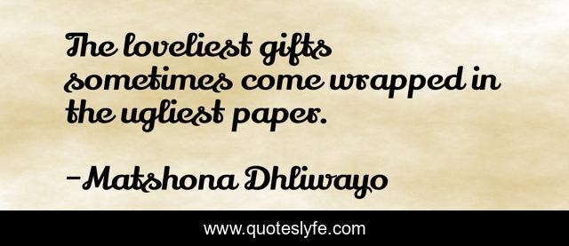 "Matshona Dhliwayo Quotes." Quoteslyfe.com, 2025. Mon. 08 Dec. 2025. <https://www.quoteslyfe.com/quote/The-loveliest-gifts-sometimes-come-wrapped-in-98138>.
