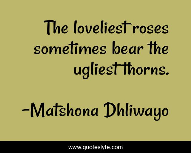 "Matshona Dhliwayo Quotes." Quoteslyfe.com, 2025. Mon. 08 Dec. 2025. <https://www.quoteslyfe.com/quote/The-loveliest-roses-sometimes-bear-the-ugliest-15680>.