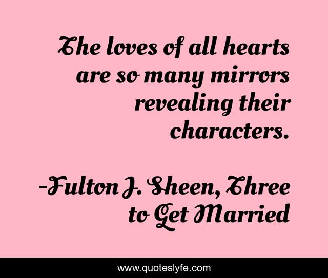 This page presents the quote "The loves of all hearts are so many mirrors revealing their characters.". Author of this quote is Fulton J. Sheen, Three to Get Married. This quote is about character, love, affection,.