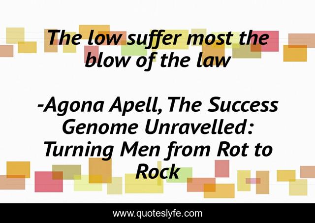 This page presents the quote "The low suffer most the blow of the law". Author of this quote is Agona Apell, The Success Genome Unravelled: Turning Men from Rot to Rock. This quote is about life, quotes, inequality, quotes-on-life, politics, law,.