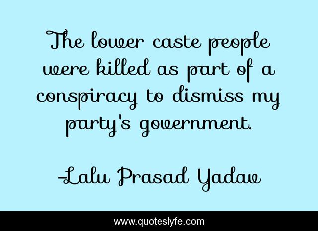 This page presents the quote "The lower caste people were killed as part of a conspiracy to dismiss my party's government.". Author of this quote is Lalu Prasad Yadav. This quote is about party, conspiracy, people,.
