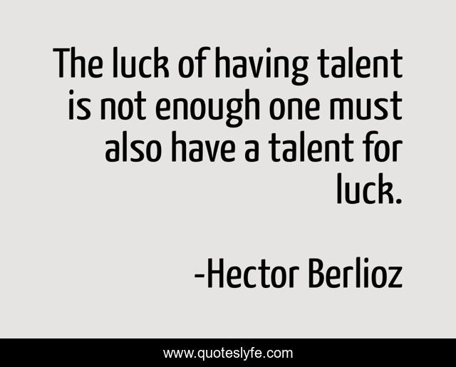 This page presents the quote "The luck of having talent is not enough one must also have a talent for luck.". Author of this quote is Hector Berlioz. This quote is about chance, fortune,.