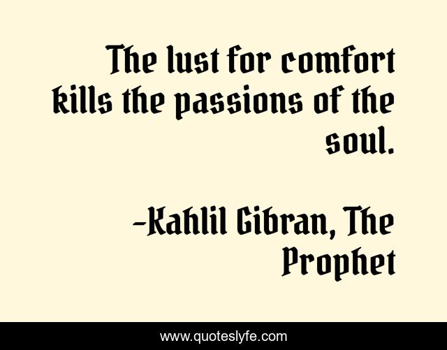 "Kahlil Gibran, The Prophet Quotes." Quoteslyfe.com, 2025. Mon. 08 Dec. 2025. <https://www.quoteslyfe.com/quote/The-lust-for-comfort-kills-the-passions-36012>.