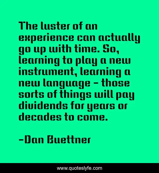 This page presents the quote "The luster of an experience can actually go up with time. So, learning to play a new instrument, learning a new language - those sorts of things will pay dividends for years or decades to come.". Author of this quote is Dan Buettner. This quote is about experience, language, time,.