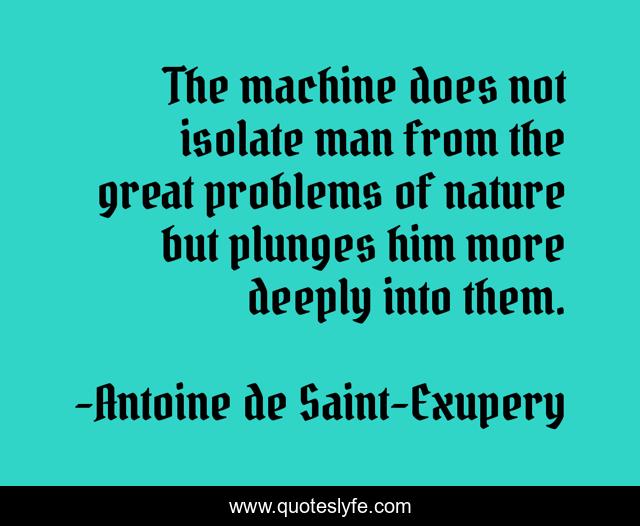 This page presents the quote "The machine does not isolate man from the great problems of nature but plunges him more deeply into them.". Author of this quote is Antoine de Saint-Exupery. This quote is about great, nature, man,.