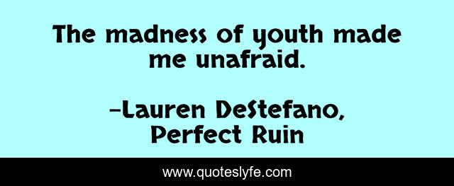 "Lauren DeStefano, Perfect Ruin Quotes." Quoteslyfe.com, 2025. Sun. 07 Dec. 2025. <https://www.quoteslyfe.com/quote/The-madness-of-youth-made-me-unafraid-184203>.