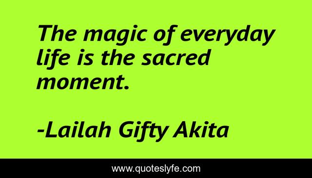 This page presents the quote "The magic of everyday life is the sacred moment.". Author of this quote is Lailah Gifty Akita. This quote is about confidence, magic, moments, wise-sayings, motivational, daily-life, optimistic, time, positive,.