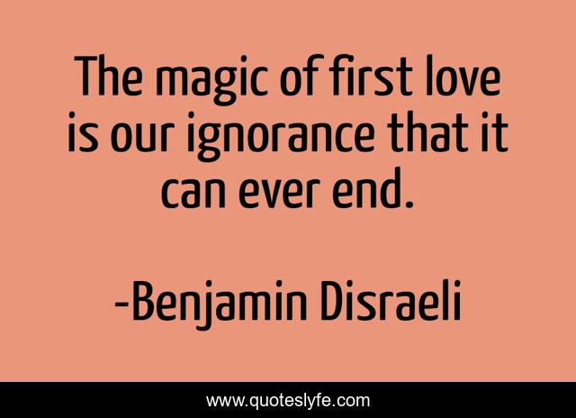 This page presents the quote "The magic of first love is our ignorance that it can ever end.". Author of this quote is Benjamin Disraeli. This quote is about love, affection,.
