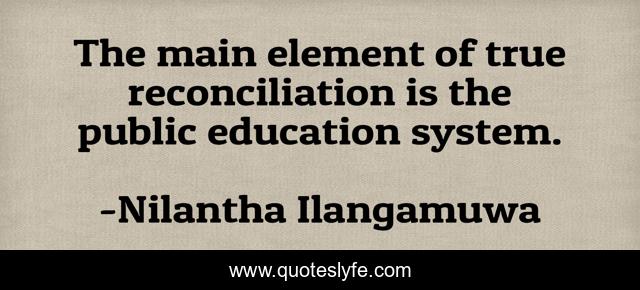 This page presents the quote "The main element of true reconciliation is the public education system.". Author of this quote is Nilantha Ilangamuwa. This quote is about reconciliation, education, transnationalism,.